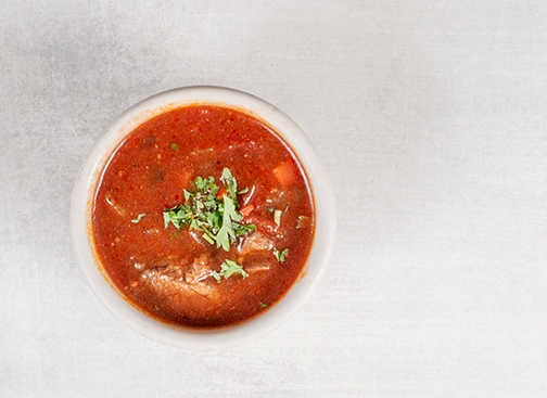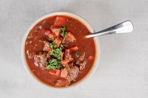 Angus beef, traditional tomato broth, root vegetables