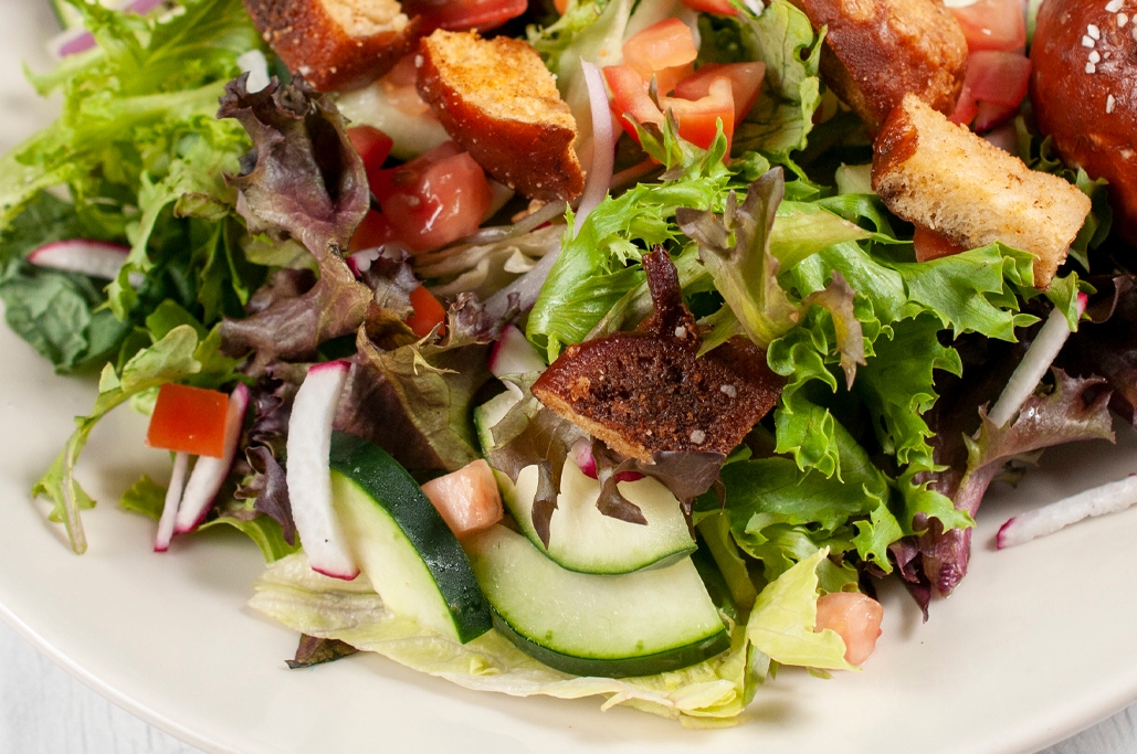Tomato, radish, cucumber, pretzel crouton