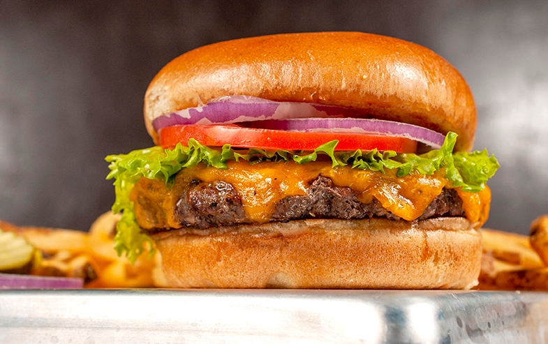 All natural Bison, cheddar, brioche bun, served with Fries
